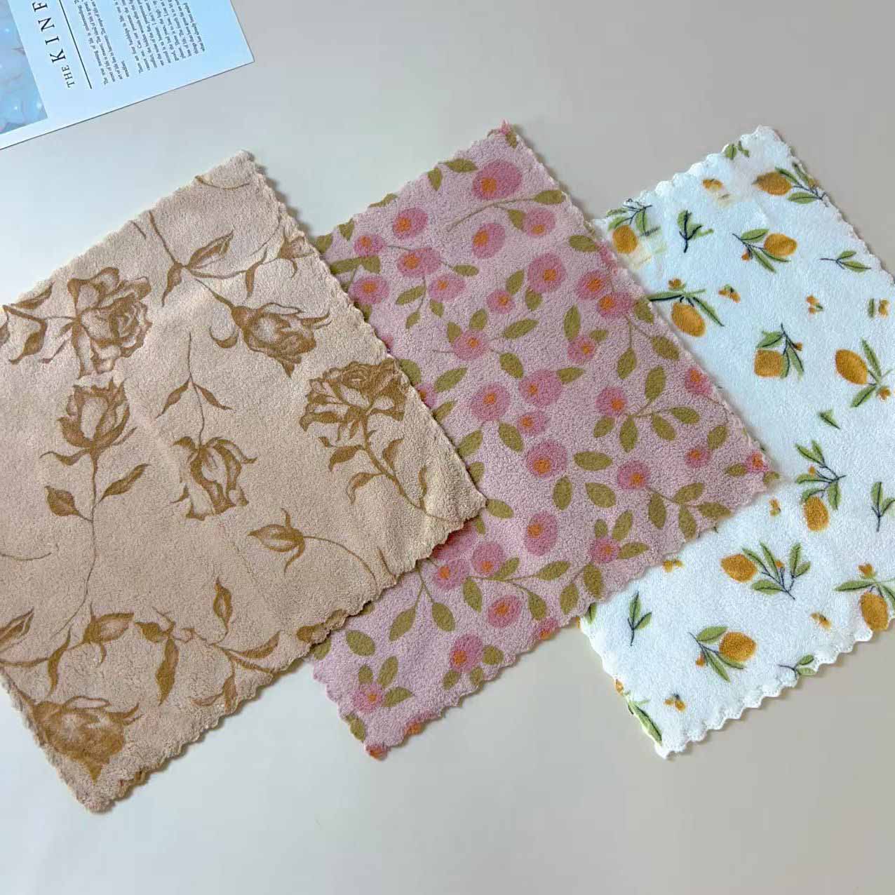 Kitchen Cloth Non-Stick Oil Easy Clean Household Thickened Printed Square Coral Fleece Reusable Eco-Friendly
