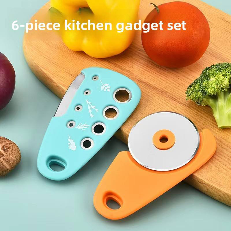 This multi-functional kitchen tool set provides one-stop solutions for various cooking needs such as pizza cutting, vanilla processing, bottle opening, and garlic grinding, saving storage space in the kitchen. High quality materials are sharp and durable, comfortable to hold and safe to operate, easily improving cooking efficiency and making cooking more worry free and convenient. It is a practical helper for daily household cooking.